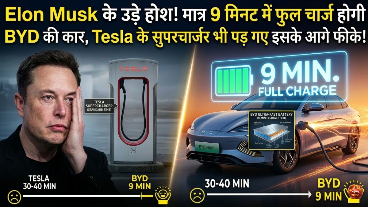 Elon Musk के उड़े होश! मात्र 9 मिनट में फुल चार्ज होगी BYD की कार, Tesla के सुपरचार्जर भी पड़ गए इसके आगे फीके!