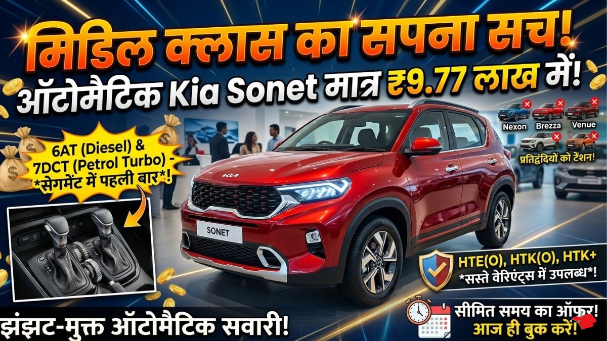 सबकी छुट्टी करने आया ‘मैग्मा रेड’ बाहुबली! Kia Sonet के सस्ते ऑटोमैटिक मॉडल्स ने उड़ाई Nexon और Brezza की नींद!